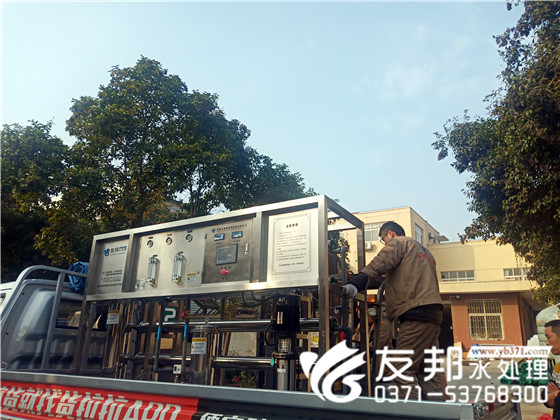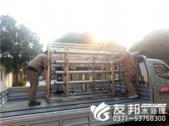 友邦工作人員依舊辛勤的忙碌著,快樂工作,幸福生活!接下來發貨的是一套2噸純凈水設備。小型純凈水設備通常指每小時出水量5噸以下的水處理系統,此類設備在設計上會更加緊湊,便于安裝,更加節省地方。