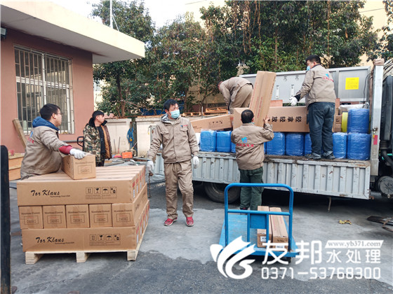 正在裝車發貨的是一套2噸純凈水設備,發往山西晉城。鄭州友邦客戶遍布全國各省,大部分都是合作多年的老客戶,隨著客戶產量的增大,廠房的擴建。設備不斷更新換代。"/>