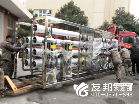 師傅們正在裝車(chē)發(fā)貨的是鄭州友邦生產(chǎn)的型號(hào)為YB-CJS-002的2噸純凈水設(shè)備。這套設(shè)備是用在鄭州高新區(qū)機(jī)械廠的生產(chǎn)用水。